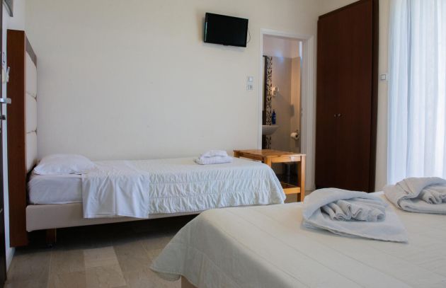 Μοντέρνο, άνετο και οικονομικό κλιματιζόμενο τρίκλινο δωμάτιο με απευθείας θέα στον Κορινθιακό Κόλπο. Ιδανικό για παρέες και οικογένειες που επιθυμούν μία οικονομική διαμονή με θέα στη θάλασσα, ακριβώς μπροστά στην παραλία.